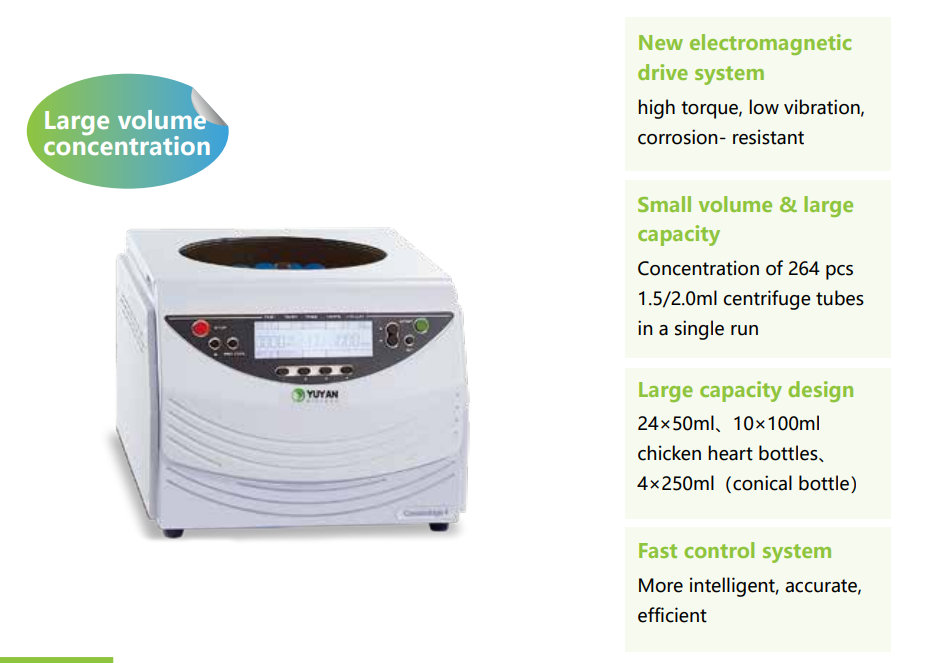 Small volume & large capacity Concentration of 264 pcs 1.5/2.0ml centrifuge tubes in a single run |