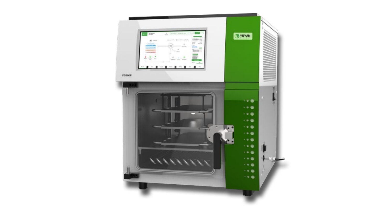 Compact bench top pilot freeze dryer is a perfect small production system applied in research and development for new products. Whole process in-situ, including pre-freezing, sublimation, secondary freeze drying, ensures reproducible results. Advanced Android control system with mass memory can store upto 1000 protocols, real-time display and monitor all freeze drying parameters. The best ever pilot freeze dryer that suits perfectly in your lab!